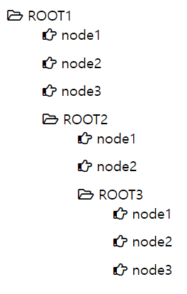 열린 폴더 아이콘을 누르면 열린 폴더 아이콘은 닫힌 폴더 아이콘으로 변경되고 root노드의 자식들이 모두 닫히는 식으로 동작한다.